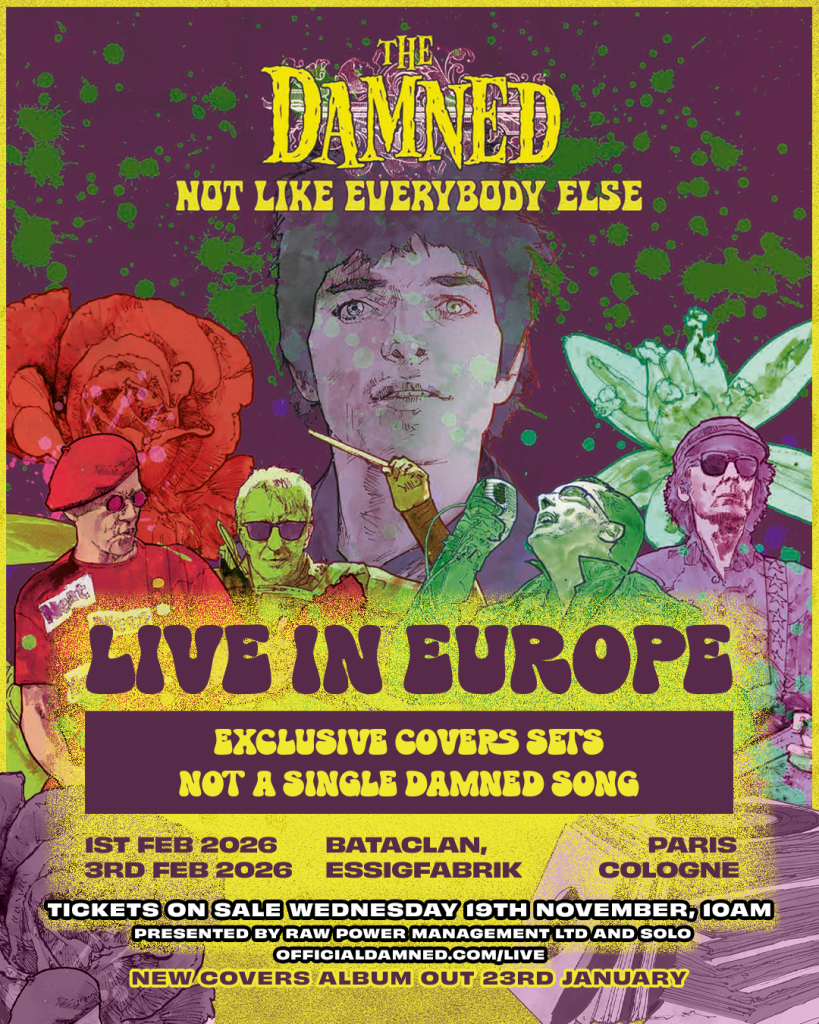 The Damned have confirmed they will be playing two EU Not Like Everybody Else shows in addition to the previously announced UK show at Manchester, UK’s Albert Hall on the 28th January 2026. The band will be appearing at Paris’s Bataclan on the 1st February 2026 and Cologne’s Essigfabrik on...